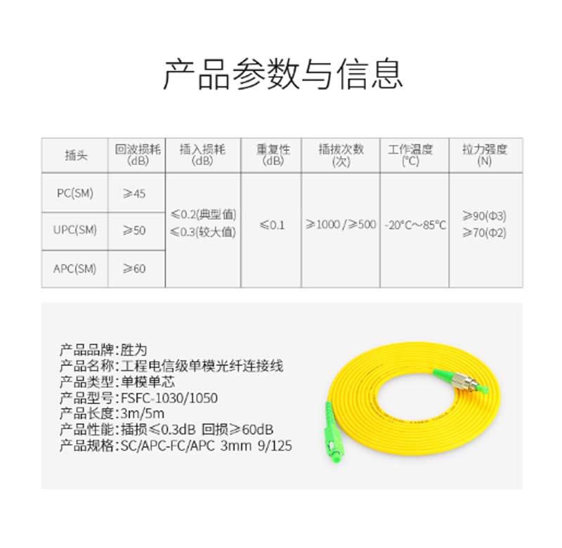 商品名称:☆胜为 SHENGWEI FSFC-1050 工程电信级光纤跳线 SC(APC)-FC(APC)单模单芯 5米