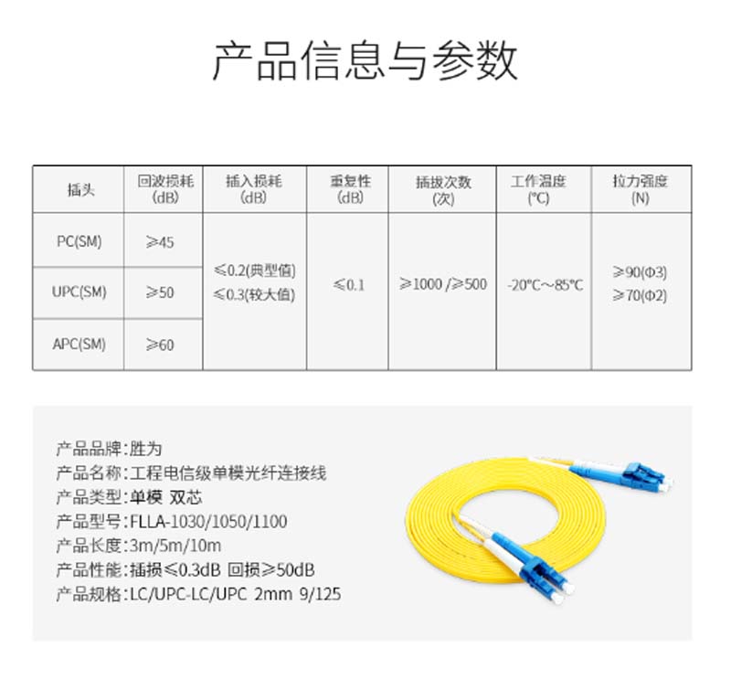 商品名称:☆胜为 SHENGWEI FLLA-1100 工程电信级光纤跳线 LC(UPC)-LC(UPC)单模双芯 10米