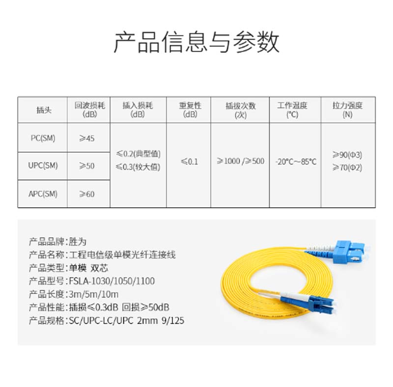 商品名称:☆胜为 SHENGWEI FSLA-1100 工程电信级光纤跳线 SC(UPC)-LC(UPC)单模双芯 10米