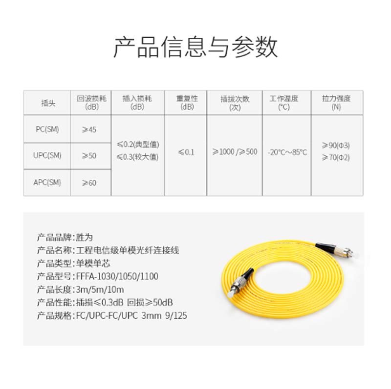 商品名称:☆胜为 SHENGWEI FFFA-1100 工程电信级光纤跳线 FC(UPC)-FC(UPC)单模单芯 10米