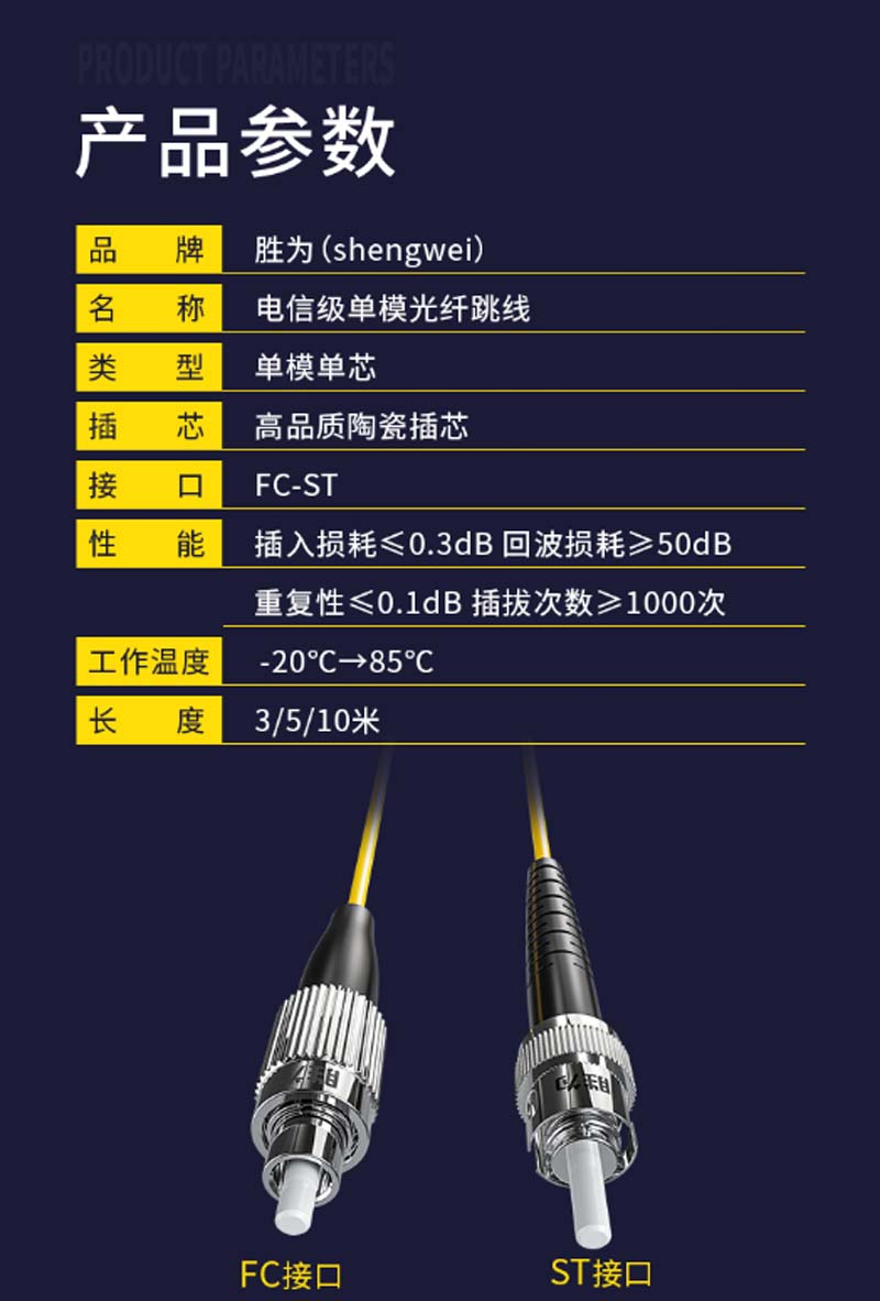 商品名称:☆胜为 SHENGWEI FSC-304 电信级光纤跳线 优质进口插芯 FC-ST单模单芯 收发器尾纤 5米