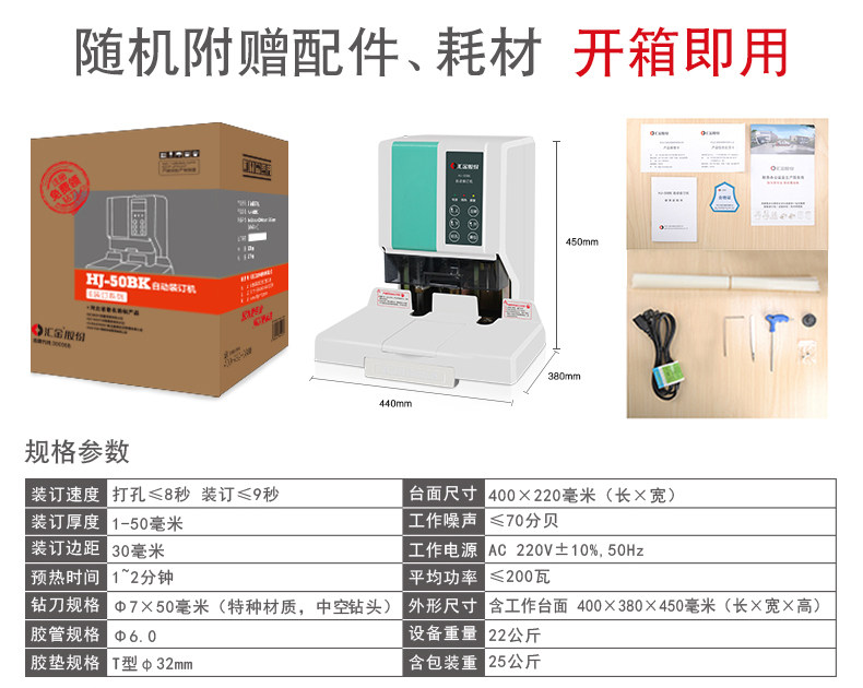 商品名称:☆汇金机电 HUIJINJIDIAN 汇金50BK全自动财务装订机 电动打孔机热熔铆管会计档案凭证装订