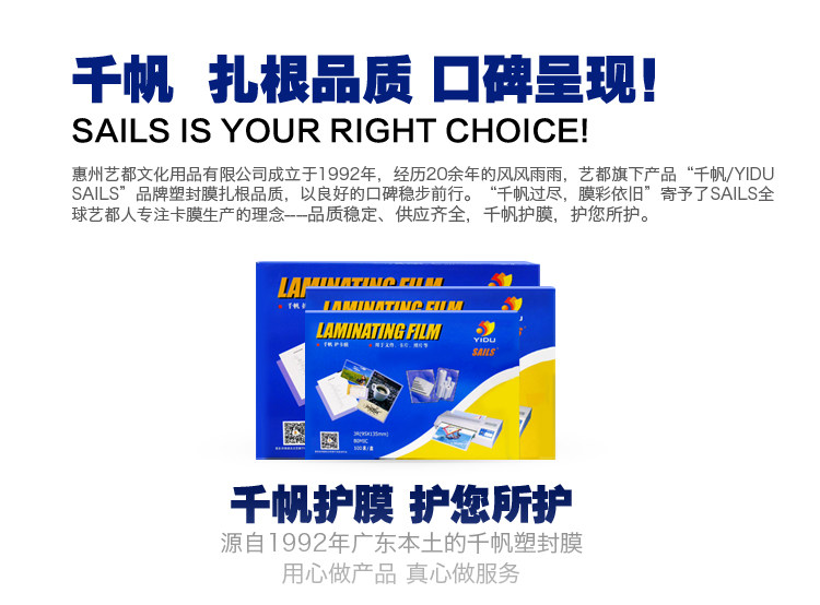 ☆千帆 YIDU SAILS 6R/8寸/A5 160×225MM×8C 护卡膜 100张/盒
