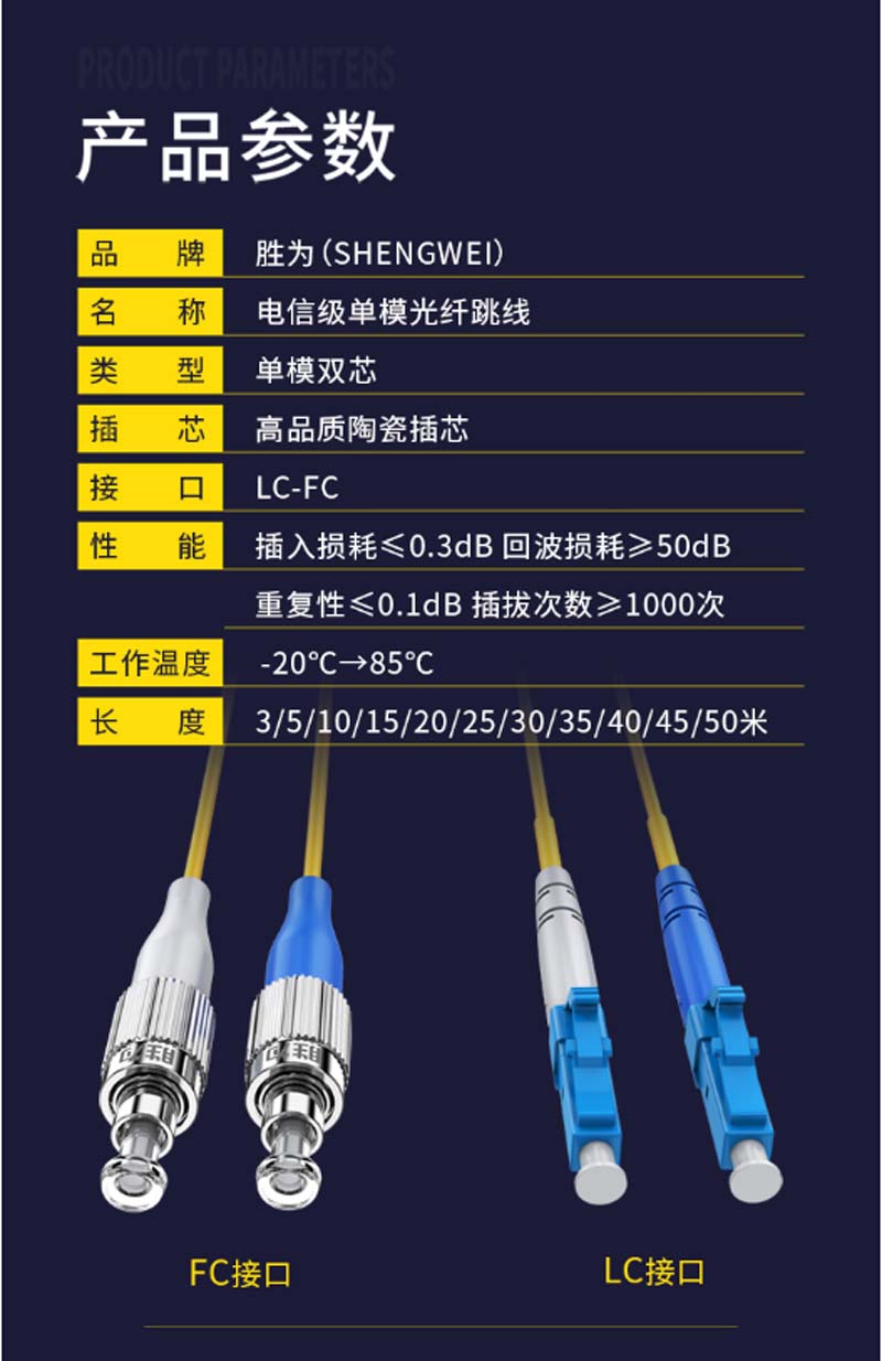 商品名称:☆胜为 SHENGWEI FSC-510 电信级光纤跳线 优质进口插芯 LC-FC单模双芯 收发器尾纤 10米