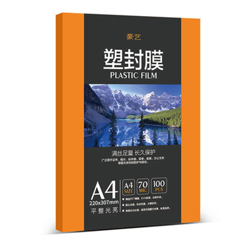 商品名称:☆豪艺 HOOYE A4 80MIC 文件照片高透塑封膜/护卡膜/过塑膜 耐用加厚 100张/包