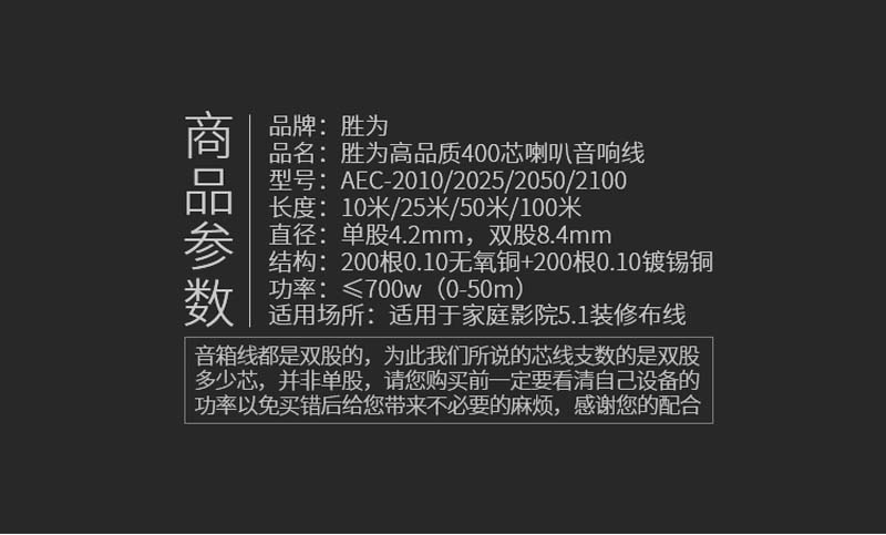 商品名称:☆胜为 SHENGWEI AEC-2025 发烧级音箱线 25米 透明400芯 音响喇叭线 音箱连接线材 无氧铜音频线