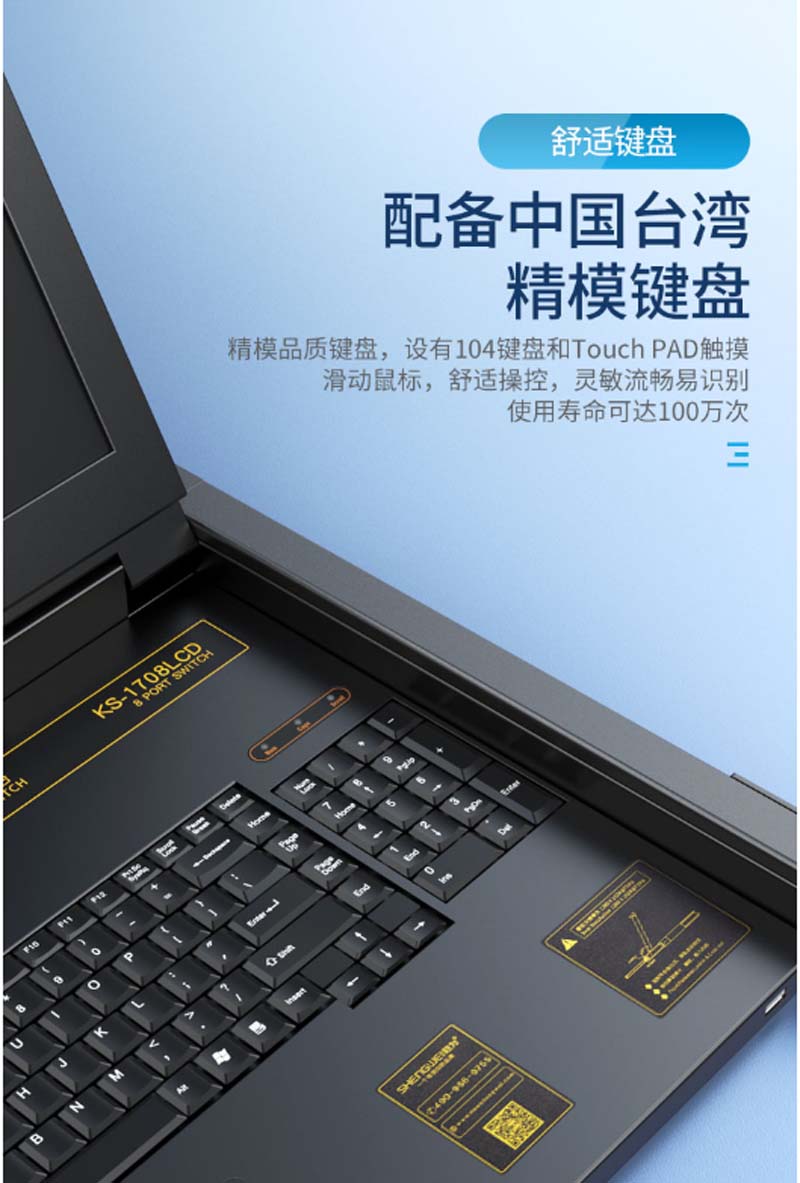 ☆胜为 SHENGWEI KS-1908LCD 19英寸 8口KVM多电脑切换器 VGA8进1出USB/PS2混接 LCD机架式显示切换器