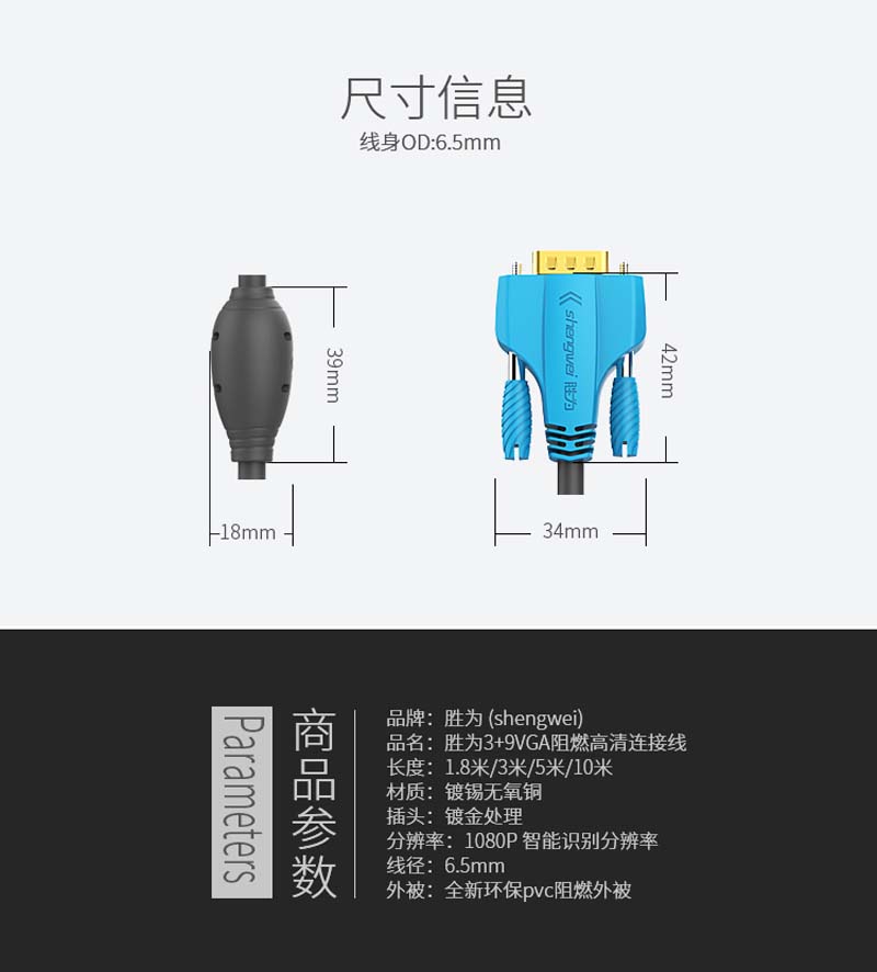 商品名称:☆胜为 SHENGWEI VC-6100 3+9阻燃VGA高清信号连接线 10M