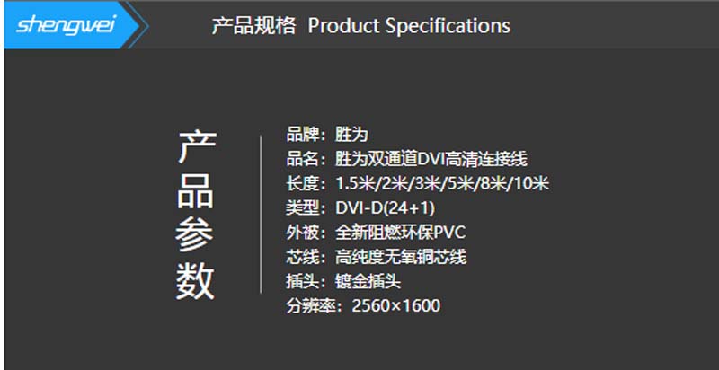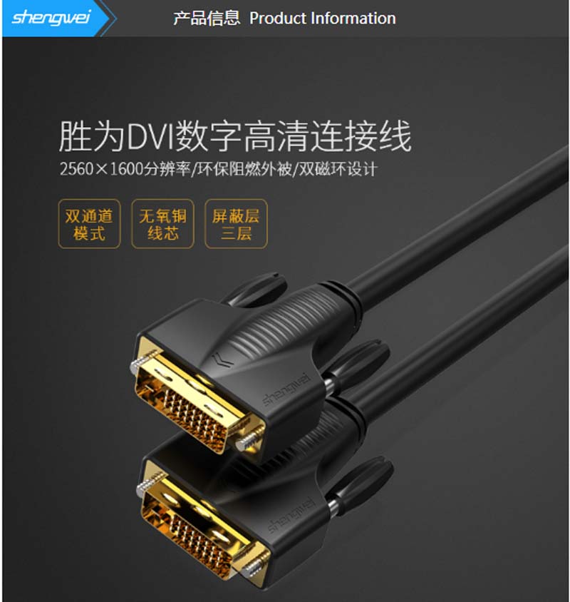 商品名称:☆胜为 SHENGWEI DC-2020 工程阻燃DVI24+1线 DVI-D公对公双通道数字高清连接线 黑色2米 电脑显示器视频线