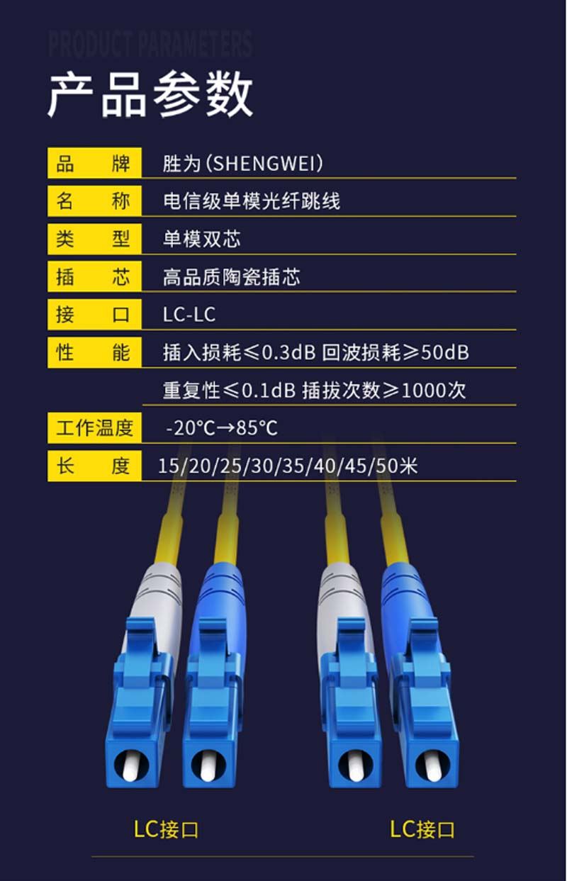 商品名称:☆胜为 SHENGWEI FSC-1107 电信级LC-LC光纤跳线 25米/对 单模双芯尾纤 收发器/光猫连接线