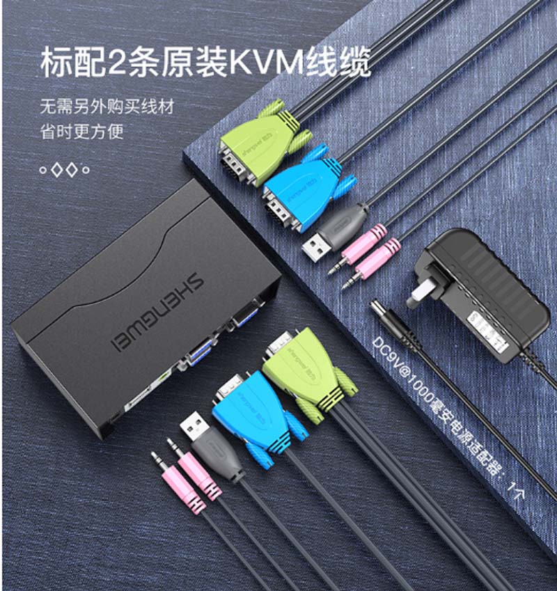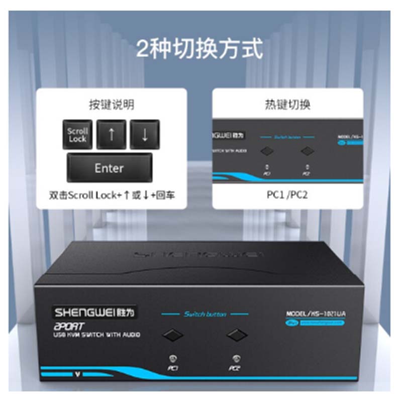 ☆胜为 SHENGWEI KS-1021UA KVM自动切换器 USB键盘鼠标 2口配线带音频 二进一出