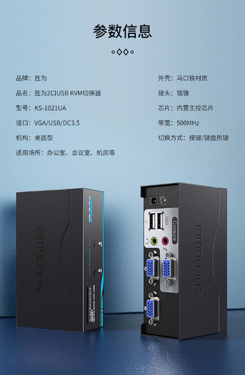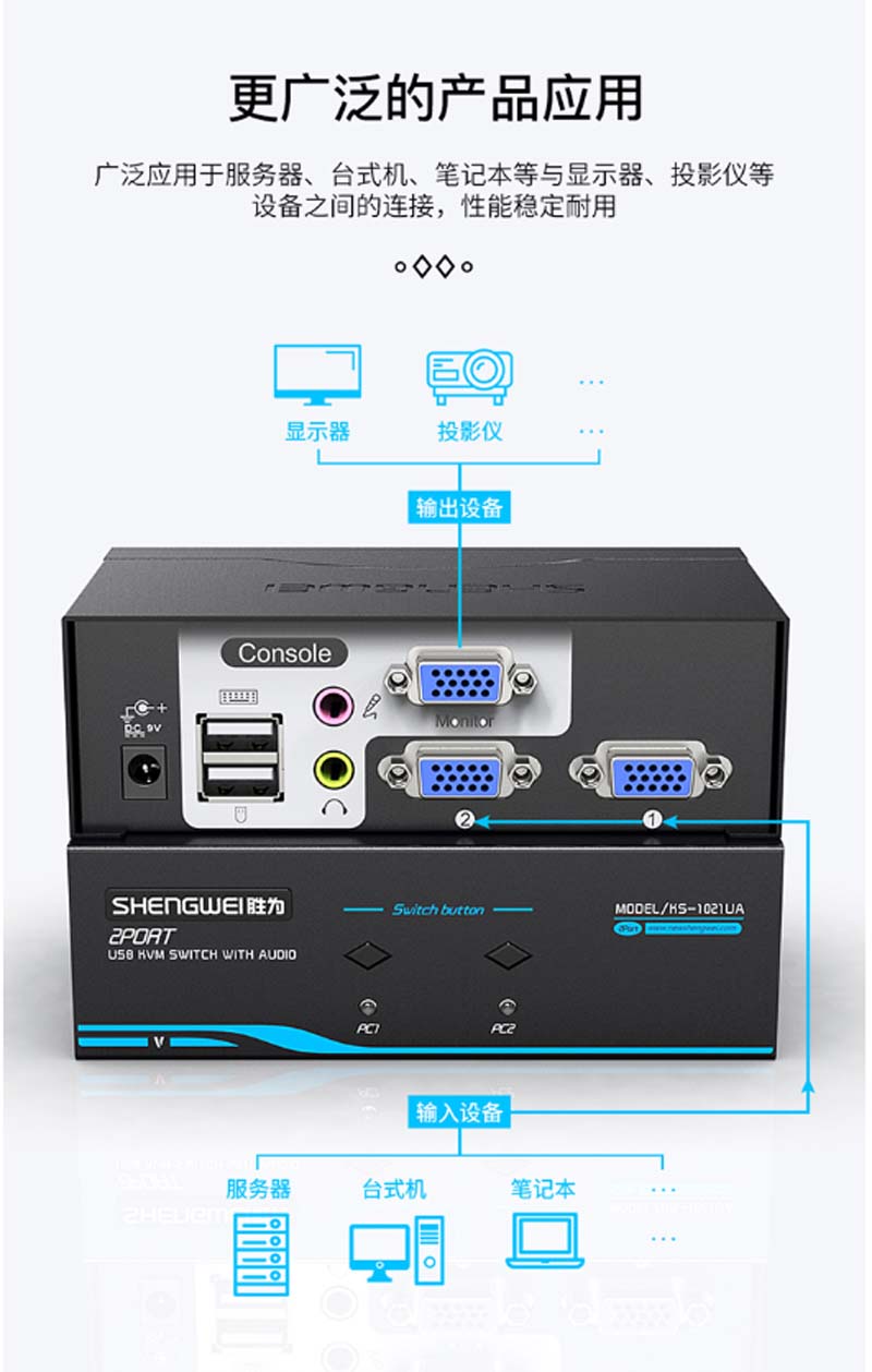 商品名称:☆胜为 SHENGWEI KS-1021UA KVM自动切换器 USB键盘鼠标 2口配线带音频 二进一出