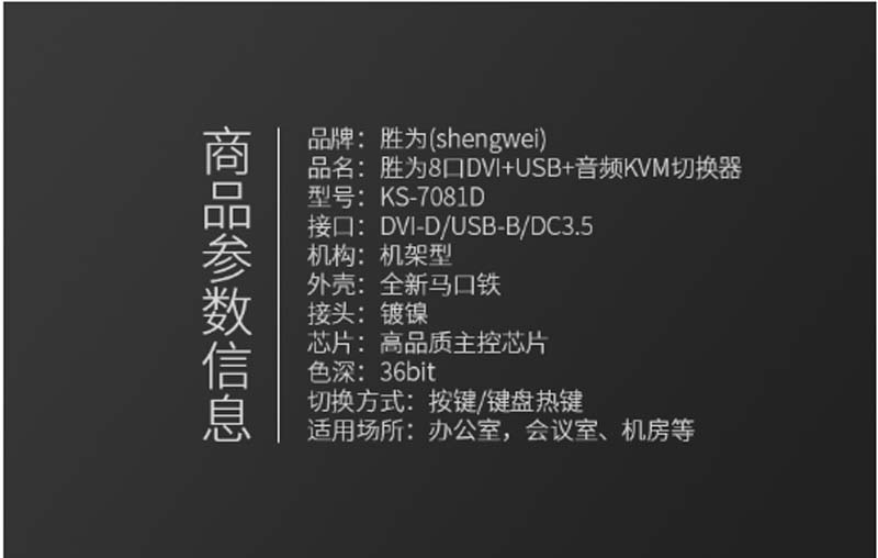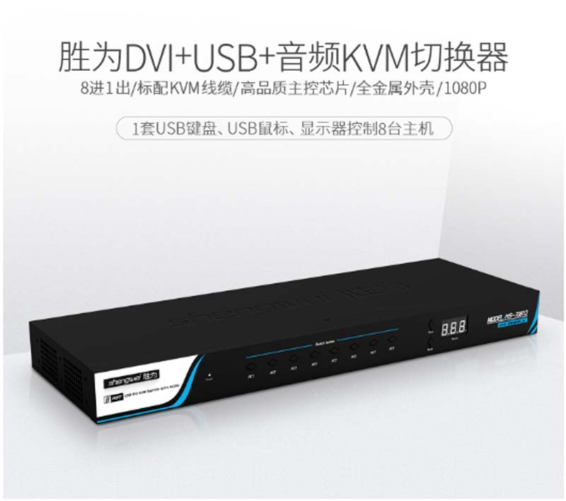 商品名称:☆胜为 SHENGWEI KS-7081D 高清DVI切换器 8口自动USB KVM切换器 8进1出电脑音视频切换器共享器1080P 配线