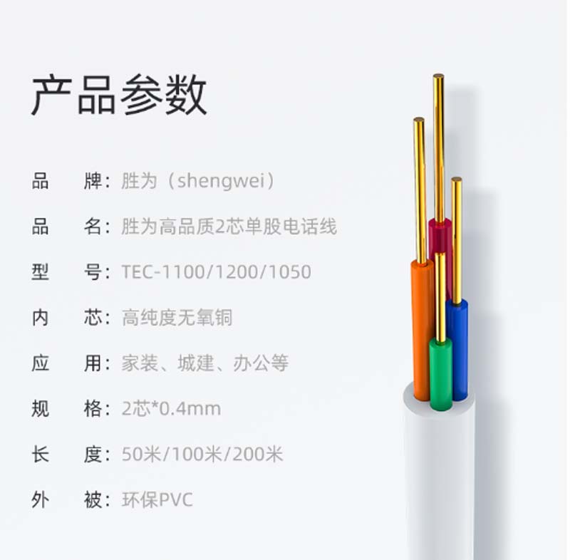 商品名称:☆胜为 SHENGWEI TEC-1200 2芯单股无氧铜线芯0.4MM 200米