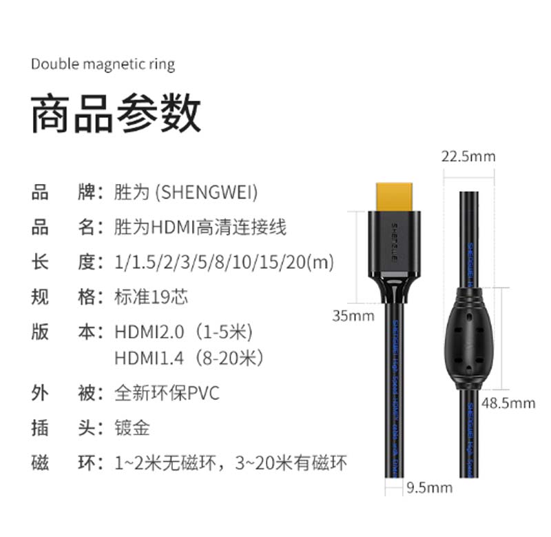 商品名称:☆胜为 SHENGWEI HC-9010B HDMI线2.0版 1米