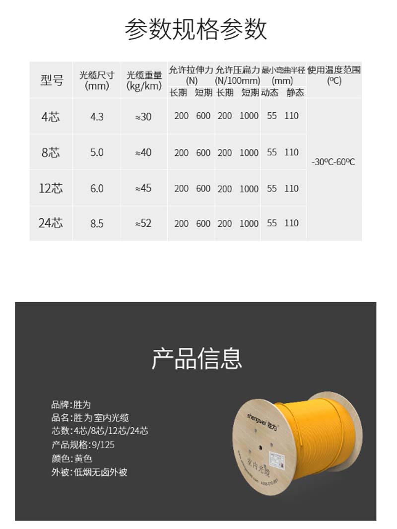 商品名称:☆胜为 SHENGWEI FSM-IH-08C-9 8芯网线单模室内光纤光缆