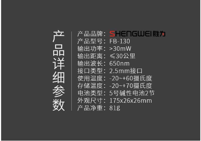 商品名称:☆胜为 SHENGWEI FB-130 红光光纤测试笔 30公里