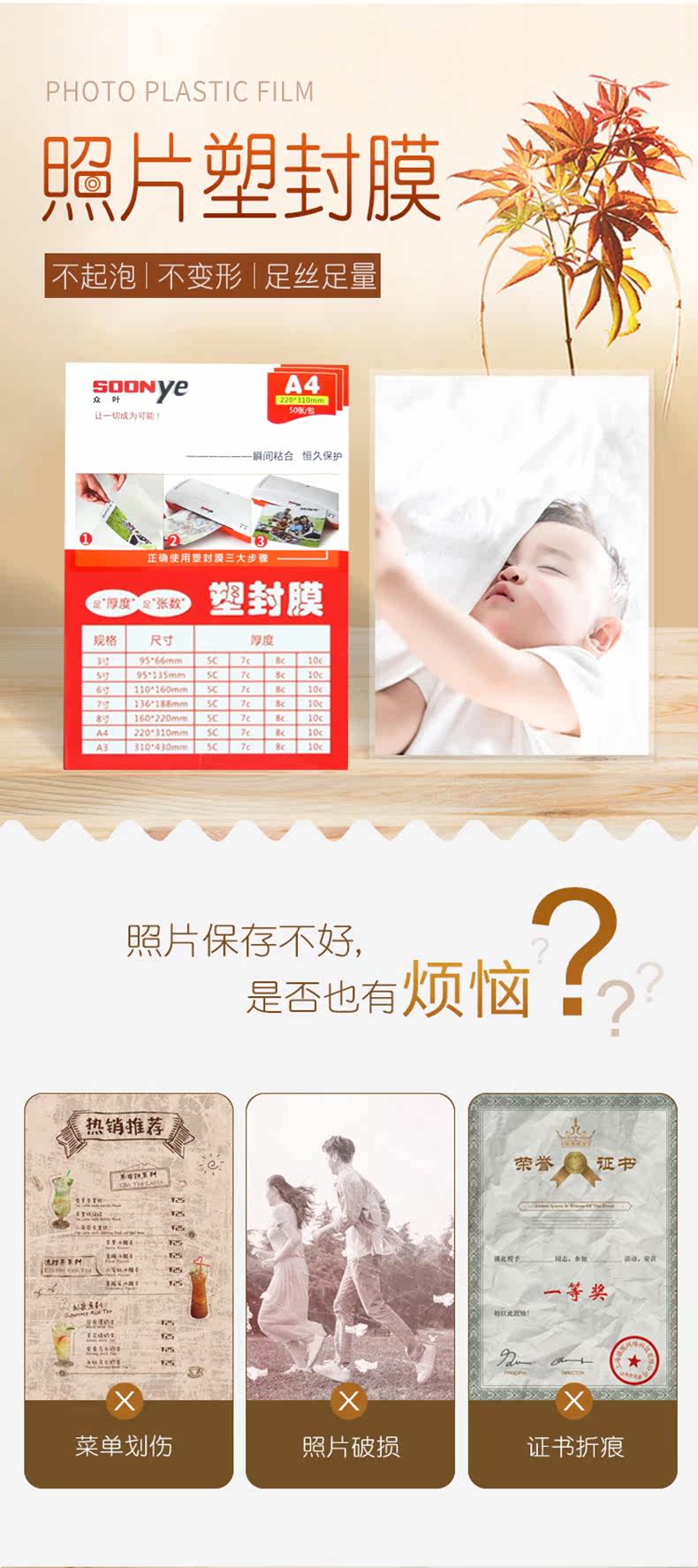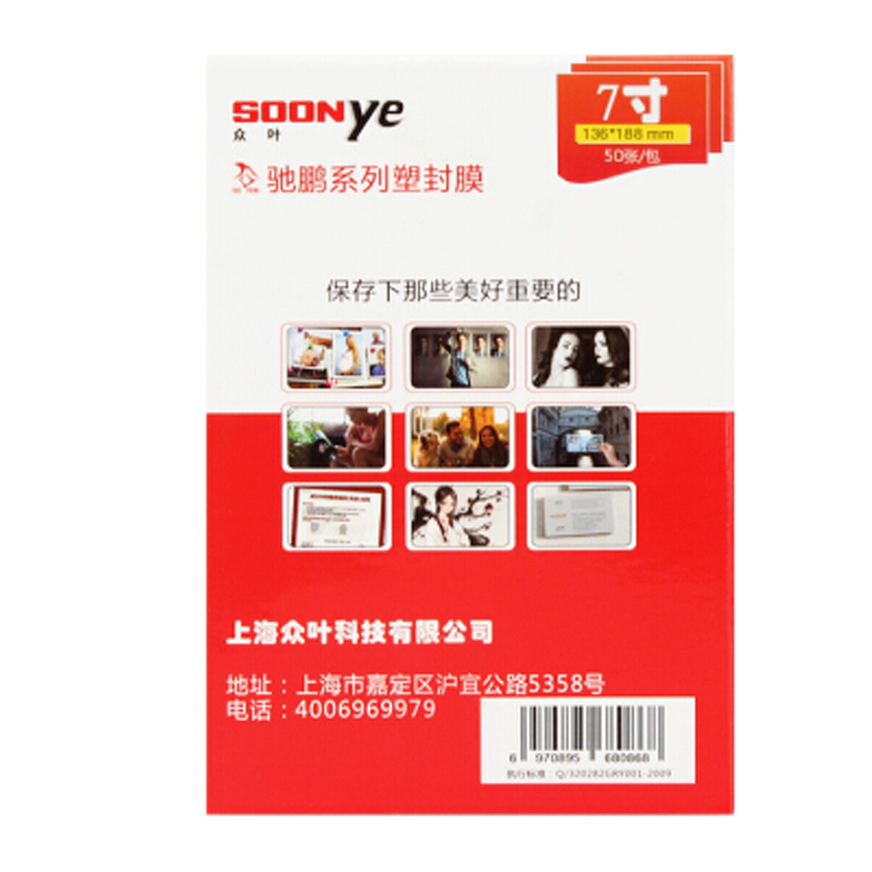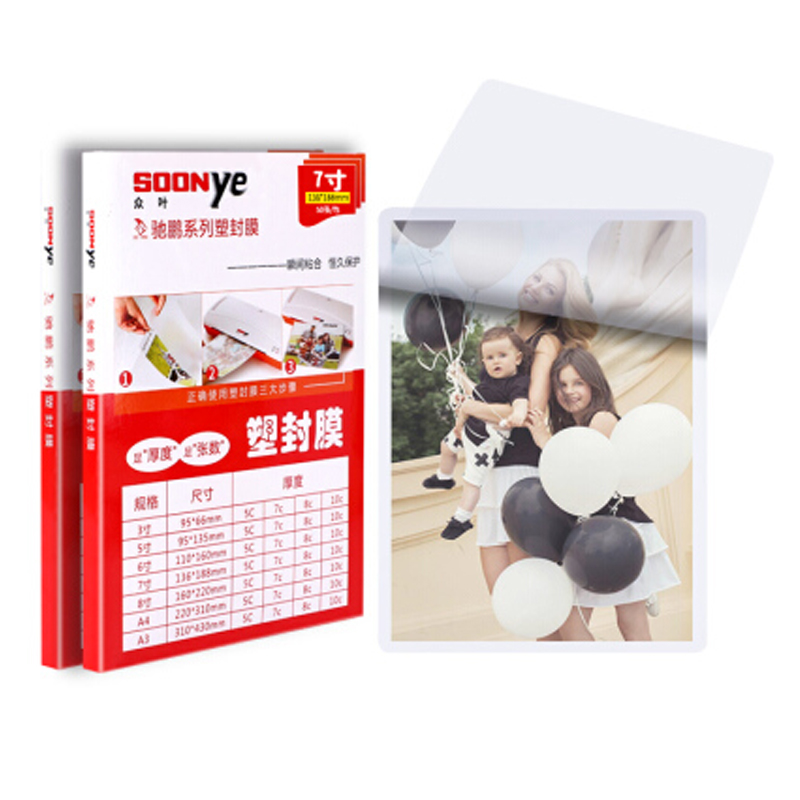 ☆众叶 SOONYE 7寸7C塑封膜50张/包 封膜机过塑膜 相片透明塑封膜 文件过胶塑封膜 照片保护膜