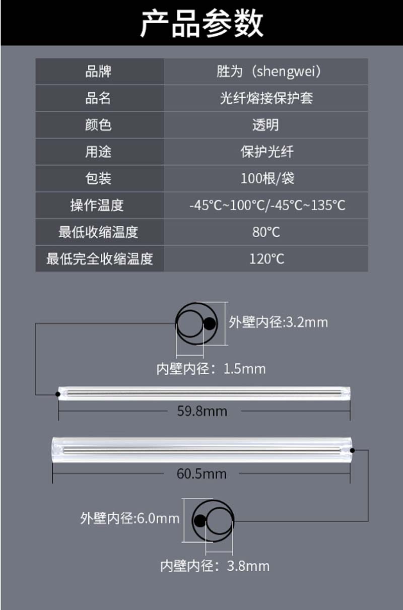 商品名称:☆胜为 SHENGWEI PS-1038 光纤热缩管 100根