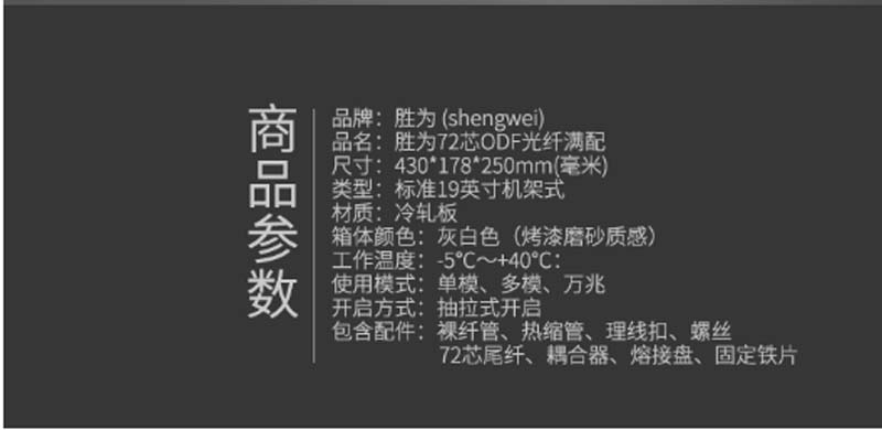 商品名称:☆胜为 SHENGWEI ODF-1072L-O 72芯 ODF光纤 19英寸 1.2MM 冷轧板