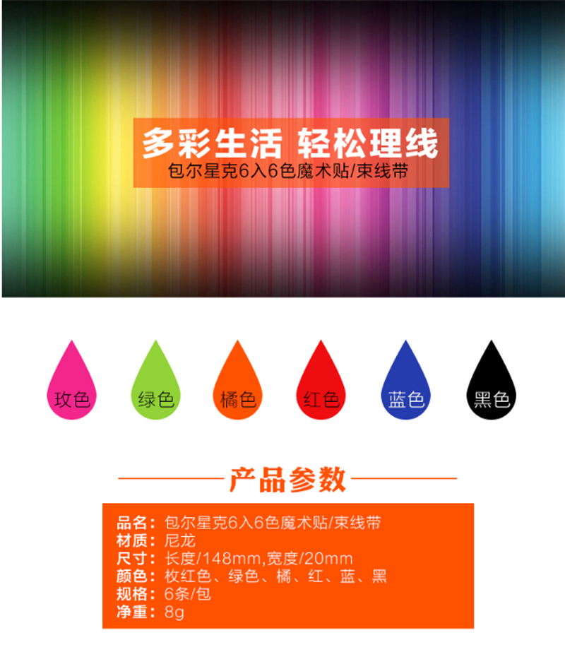 商品名称:☆包尔星克 POWERSYNC CTM-06 彩色魔术带 六色