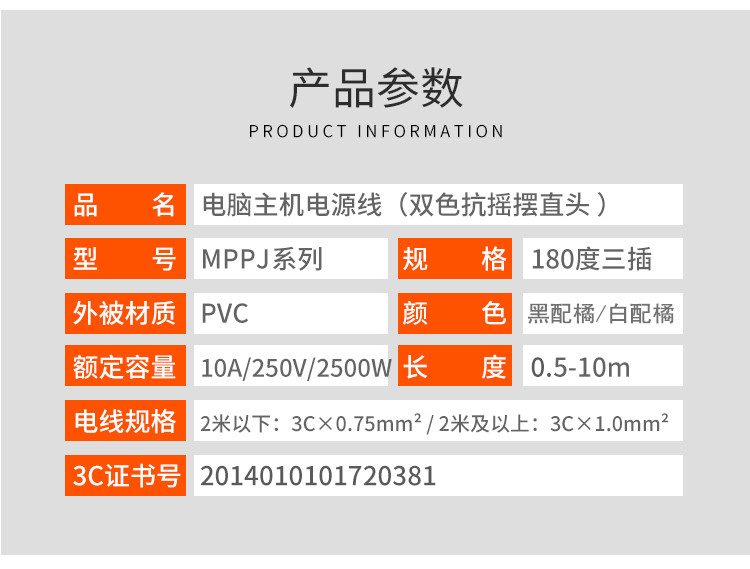 商品名称:☆包尔星克 POWERSYNC EP3C-01 电脑主机电源线 1.8米
