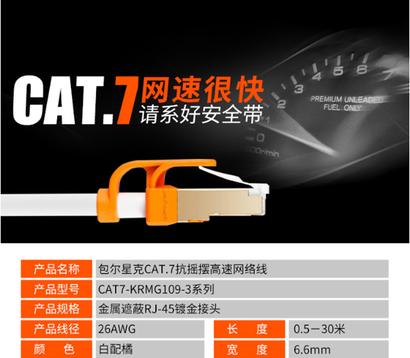 商品名称:☆包尔星克 POWERSYNC CAT7-KRMG59-3 七类网线 5米 高速纯铜 千兆网络圆线 铝箔屏蔽 耐摇摆 珠光白色