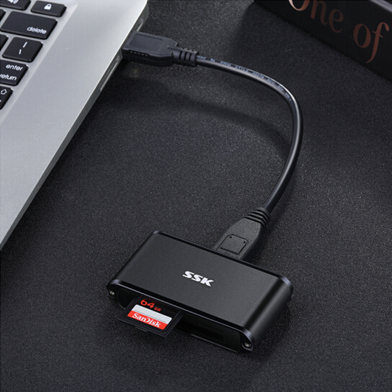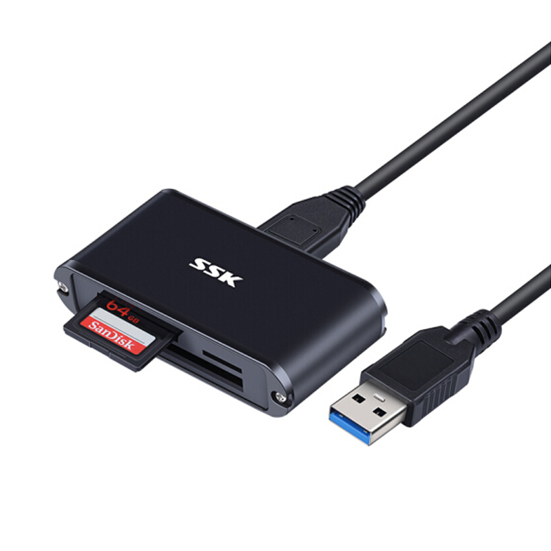 ☆飚王 SSK 多功能合一读卡器高速USB3.0读写支持TF手机存储卡SD/CF单反相机卡金属材质SCMR630