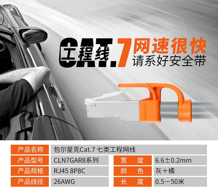 商品名称:☆包尔星克 POWERSYNC CLN7GAR8010 七类双屏蔽双绞千兆镀镍纯铜耐折弯工程线灰色 1米网线