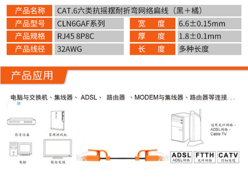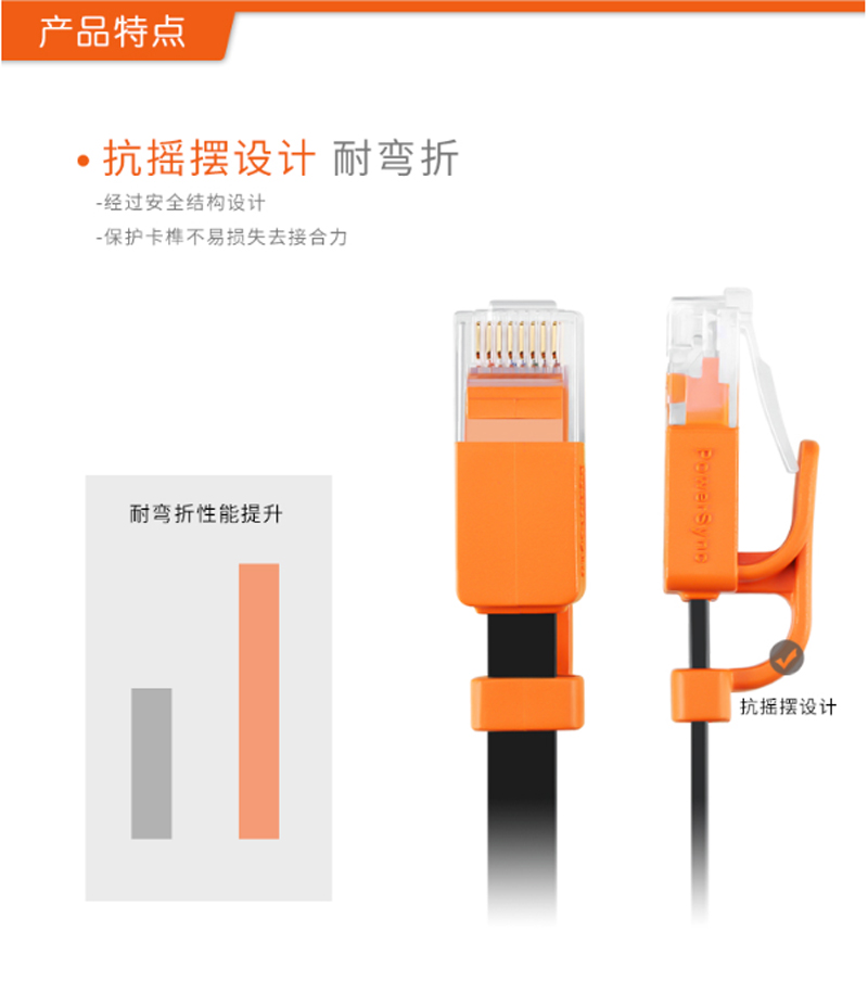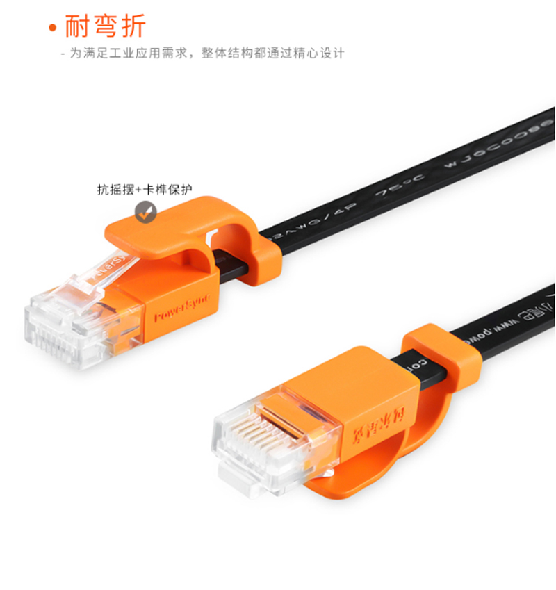 商品名称:☆包尔星克 POWERSYNC CLN6GAF0030 CAT6超六类网线抗摇摆扁线 双绞 千兆 黑配橘 3米