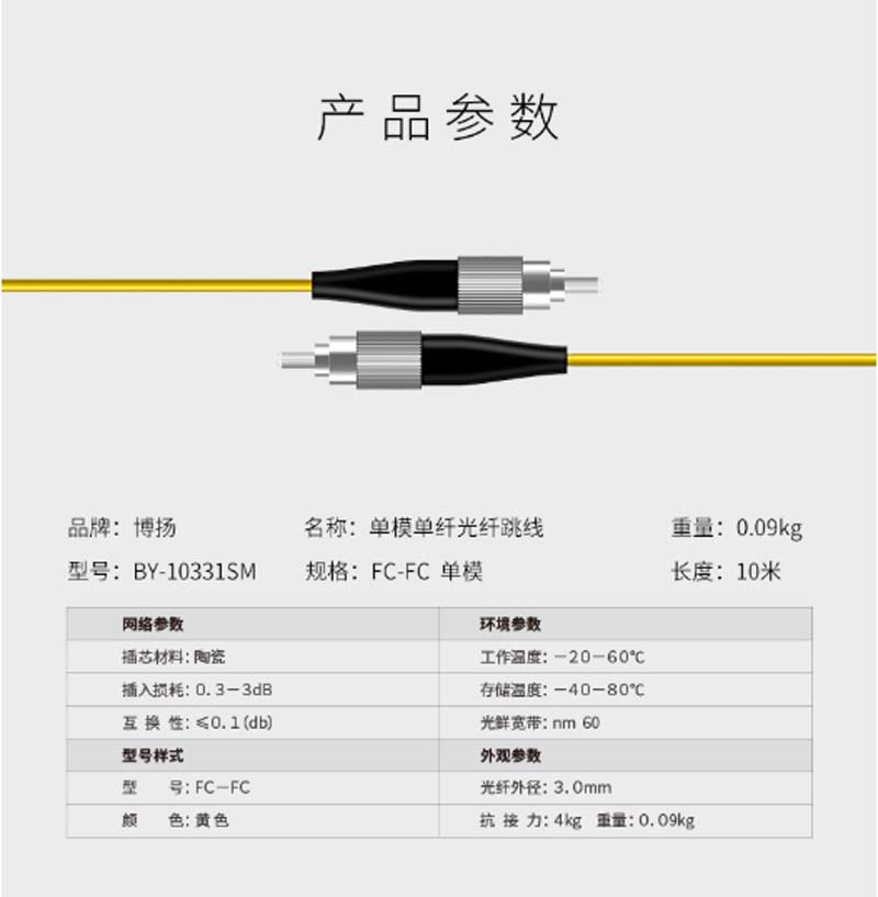 商品名称:☆博扬 BOYANG BY-10331SM 电信级光纤跳线FC-FC 10米 单模单芯 低烟无卤环保光纤 收发器尾纤