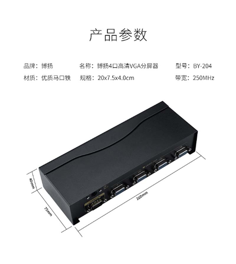 商品名称:☆博扬 BOYANG BY-204 高清视频VGA一分四分频器 笔记本电脑电视显示器 1拖4分屏器 250MHZ