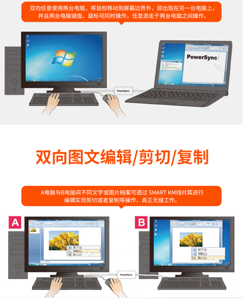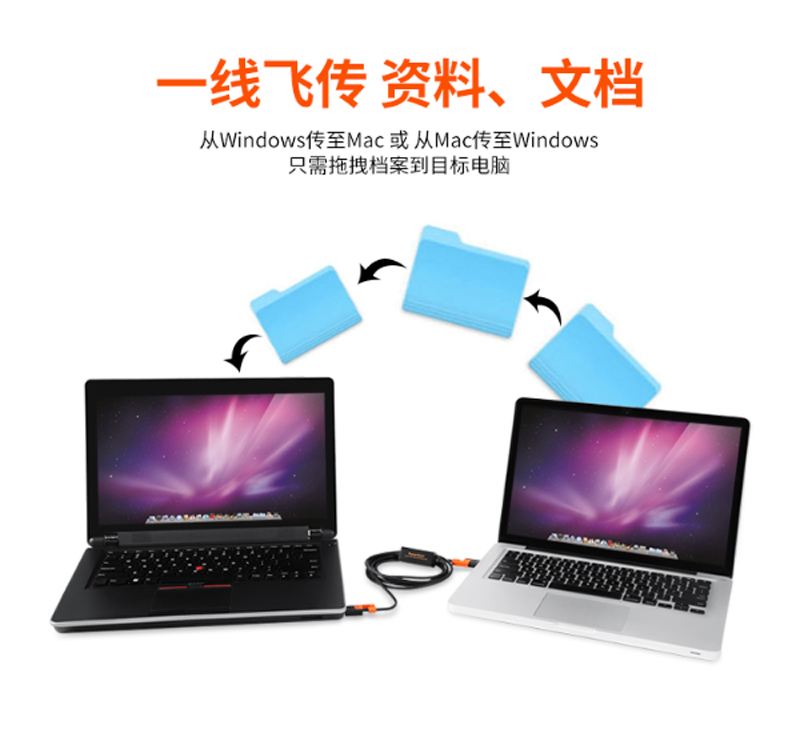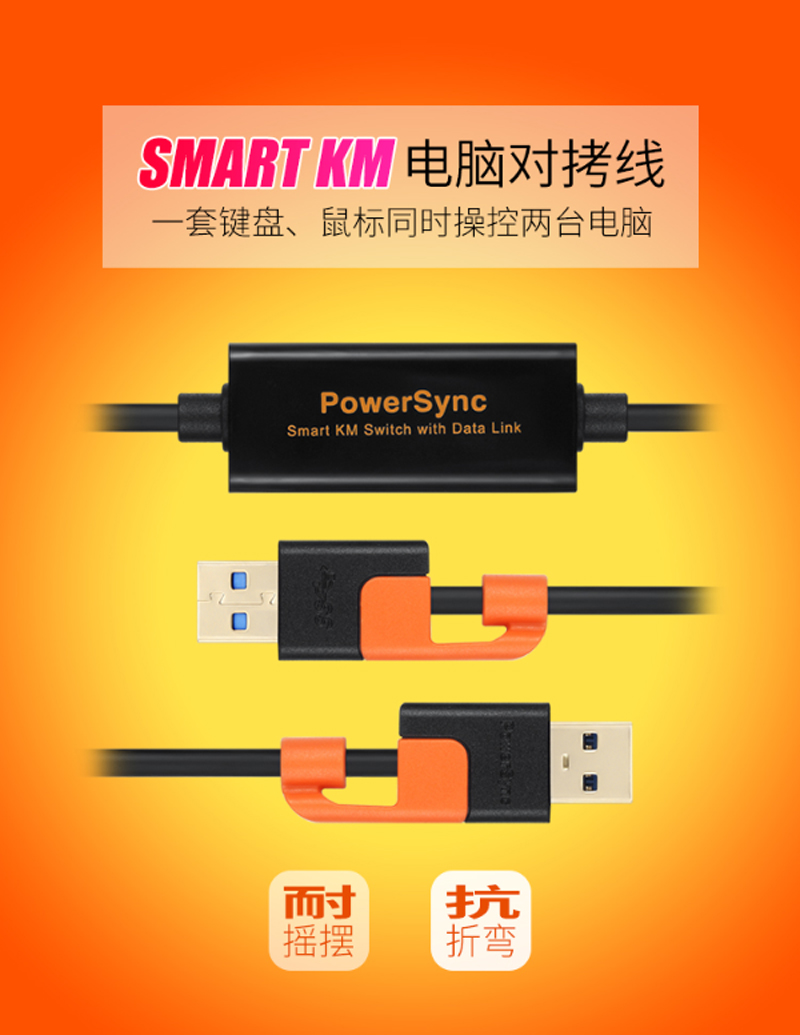 ☆包尔星克 USB3-EKM200B USB3.0多功能资料对拷线对传线 1.5米 黑配橘