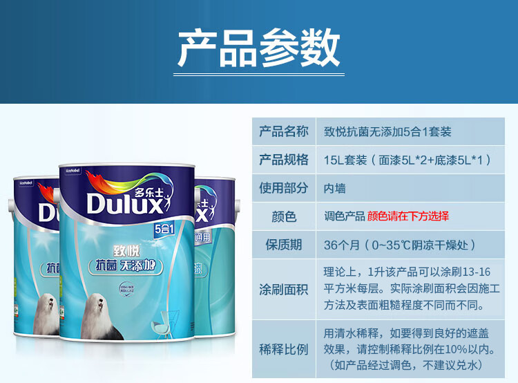 商品名称:☆多乐士 DULUX A741+A749致悦抗菌无添加五合一内墙乳胶漆墙面漆套装18L