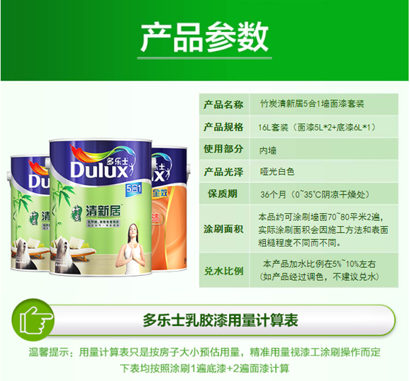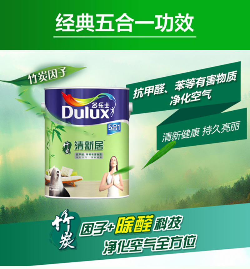 商品名称:☆多乐士 DULUX A895+A931竹炭清新居五合一墙面漆内墙乳胶漆油漆涂料墙面漆白色套装15L