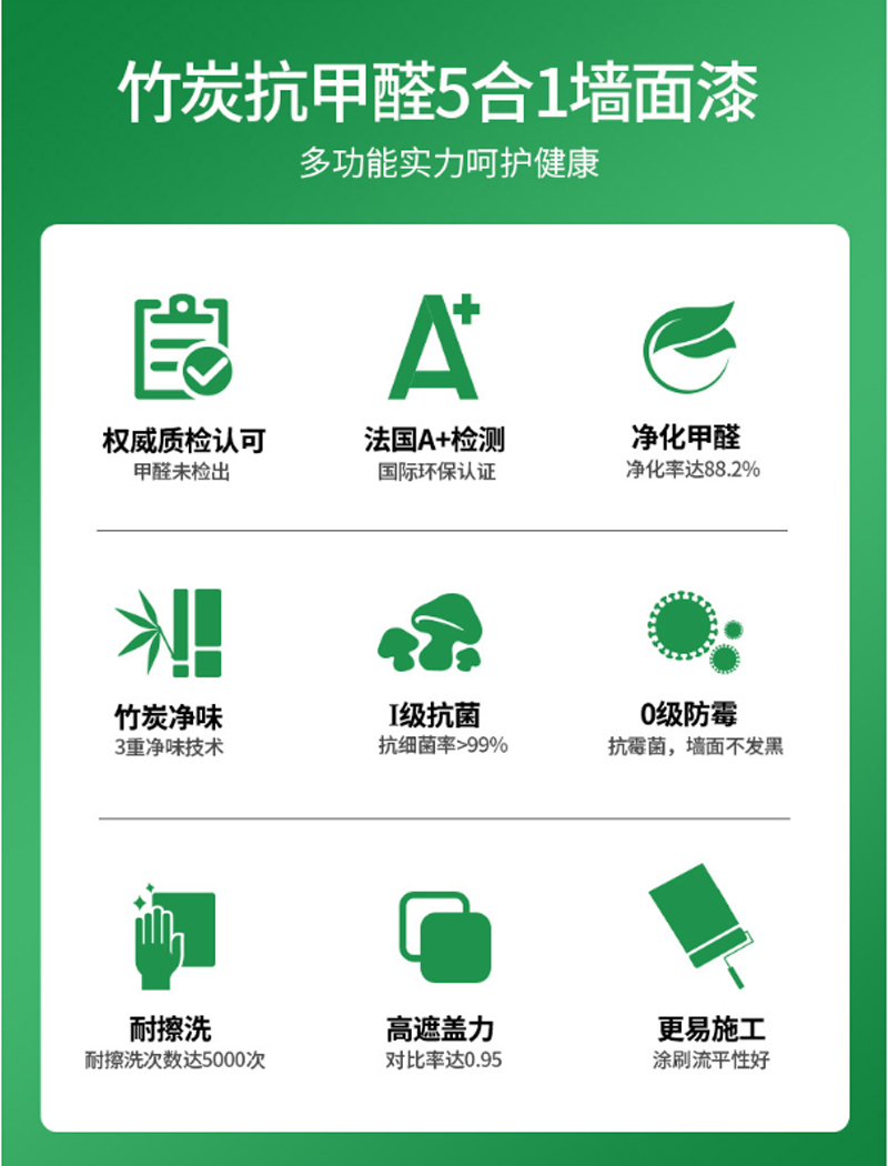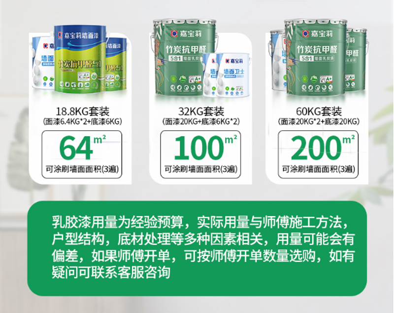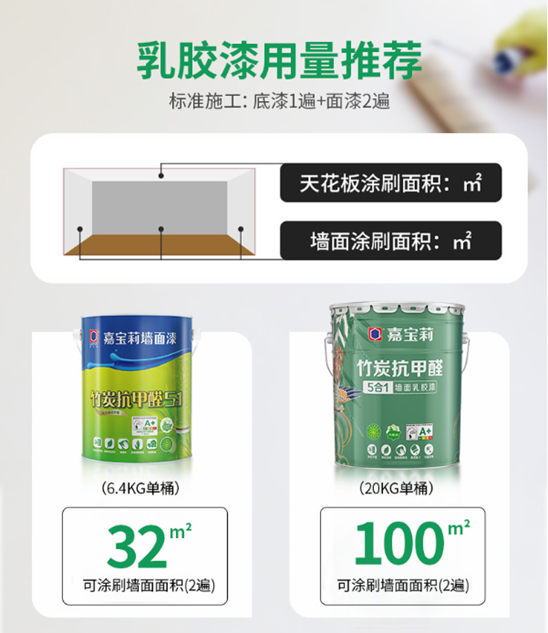 商品名称:☆嘉宝莉 CARPOLY 竹炭净醛五合一墙面乳胶漆 哑光 6.4KG