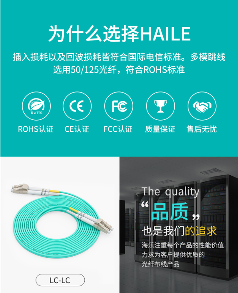 商品名称:☆海乐 HAILE HJ-2LC-LC-MT1.5 双芯万兆多模光纤跳线(2LC-LC,50/125,OM3)1.5米