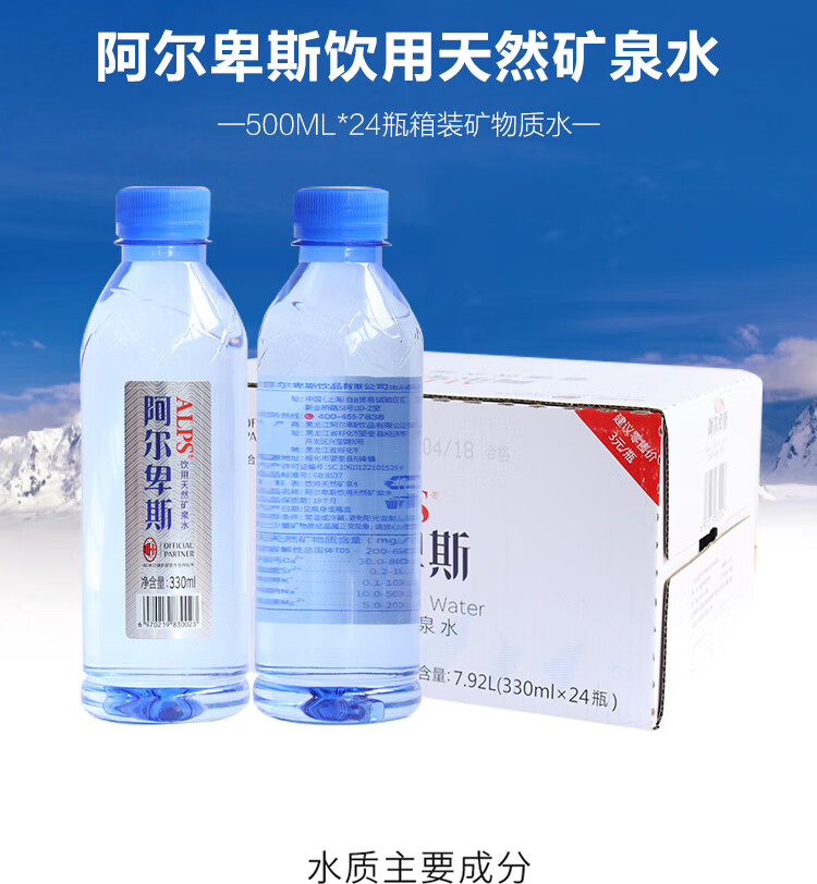 商品名称:☆阿尔卑斯 ALPENLIEBE 天然矿泉水 500ML×24瓶