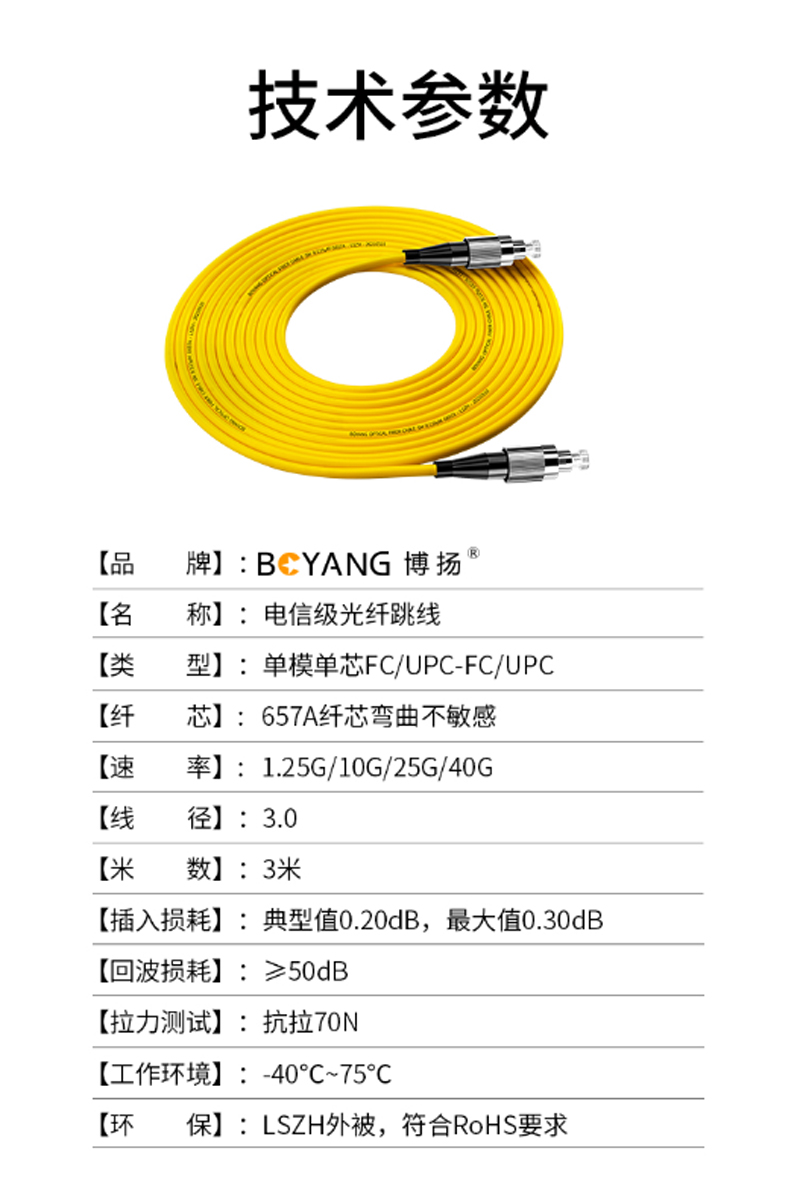 商品名称:☆博扬 BOYANG BY-3311SM 电信级光纤跳线FC-SC 3米 单模单芯 低烟无卤环保光纤线 收发器尾纤