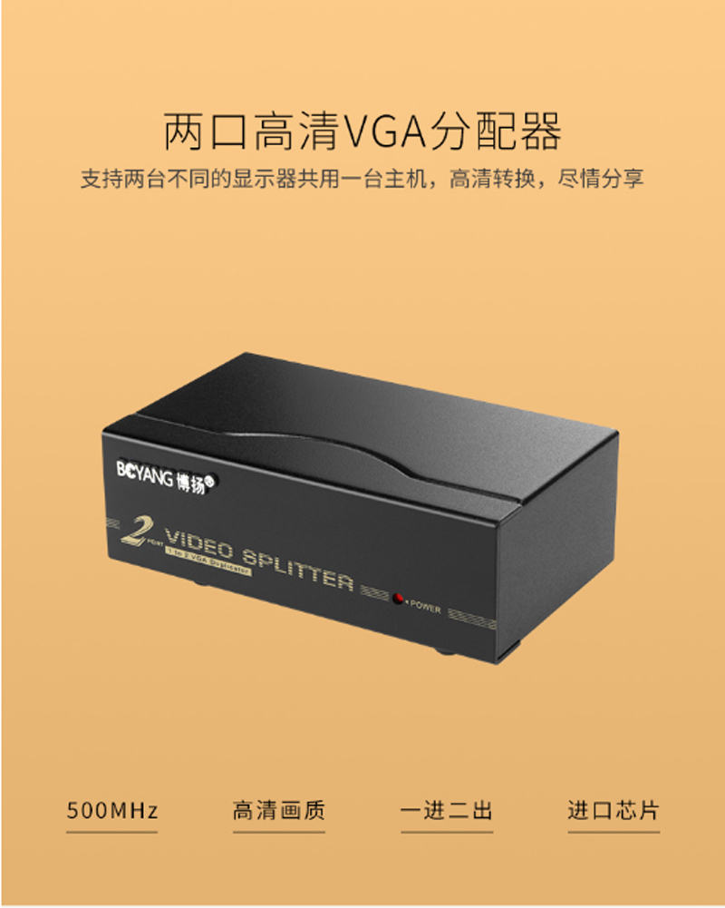 ☆博扬 BOYANG BY-502 高清视频VGA一分二分频器 笔记本电脑电视显示器 1拖2分屏器 500MHZ