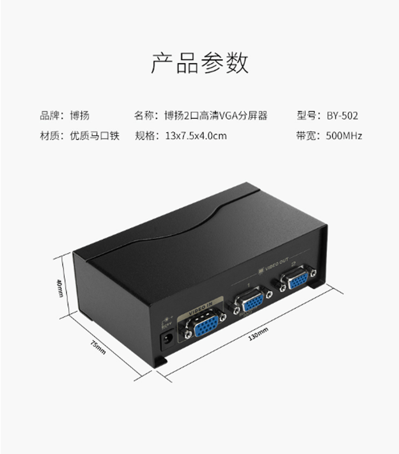 商品名称:☆博扬 BOYANG BY-502 高清视频VGA一分二分频器 笔记本电脑电视显示器 1拖2分屏器 500MHZ