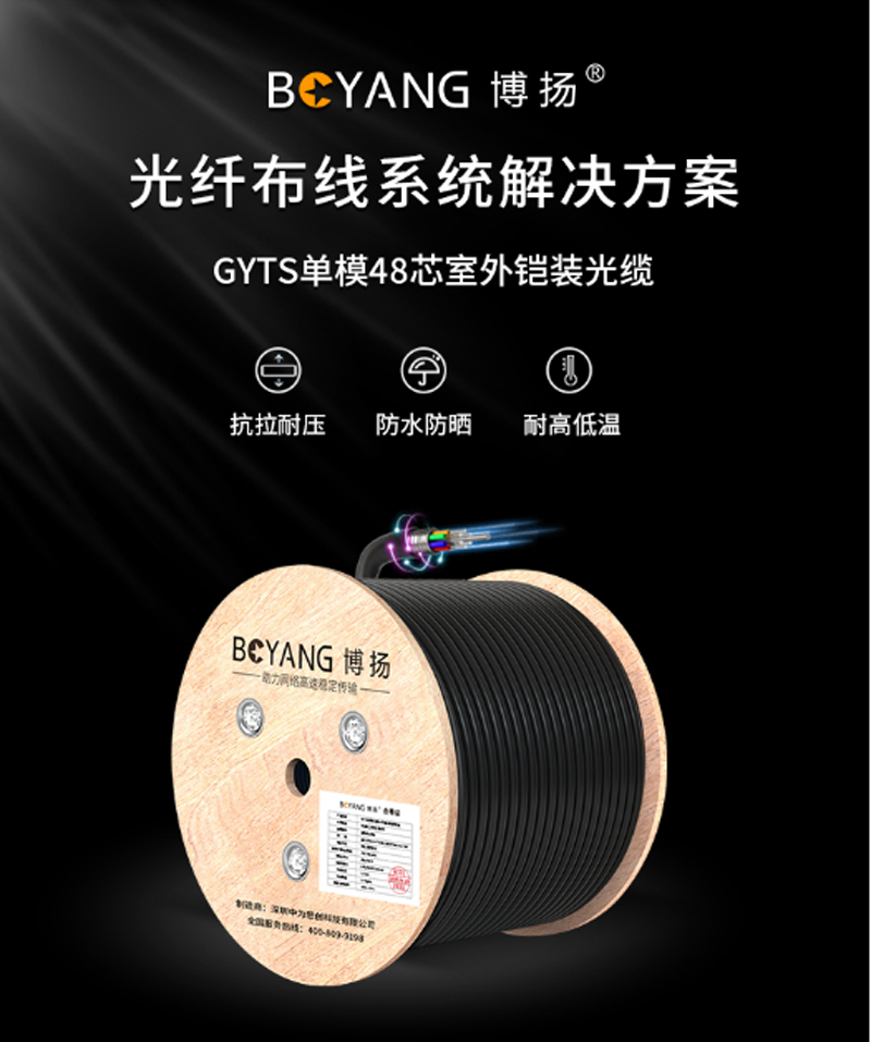 ☆博扬 BOYANG BY-GYTS-48B1 铠装48芯单模室外光缆 GYTS层绞式 3000米/轴 48芯