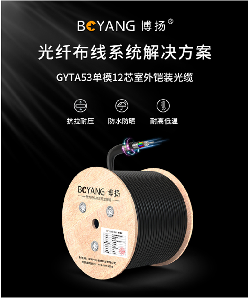 商品名称:☆博扬 BOYANG BY-GYTA53-12B1.3 12芯单模室外光缆 GYTA53层绞式直埋网线光纤线 100米