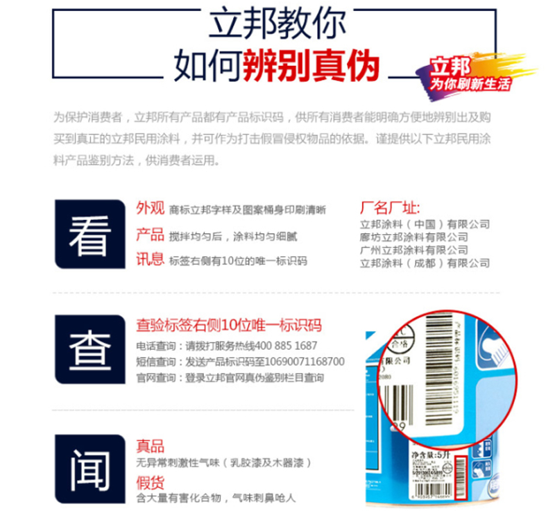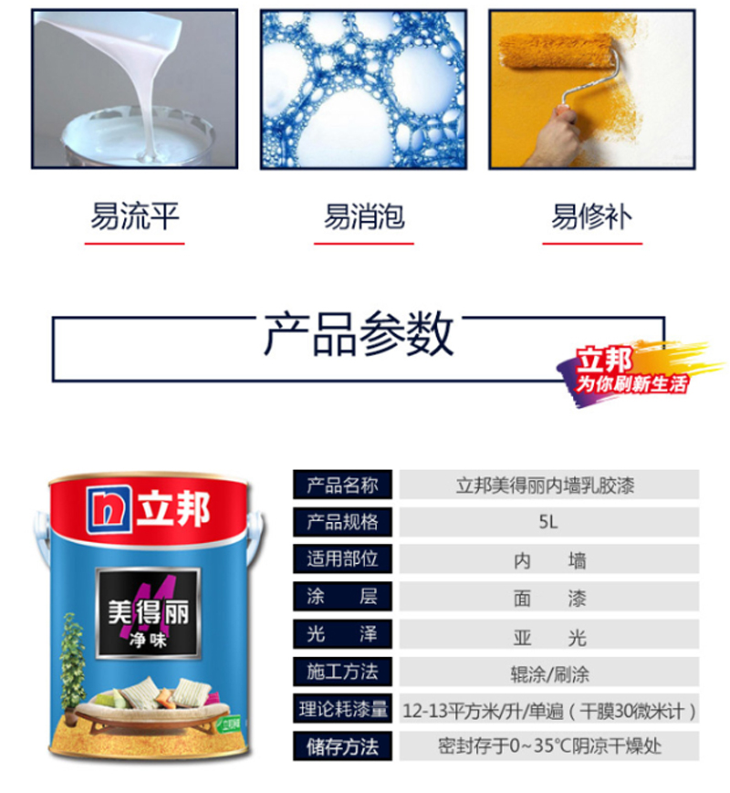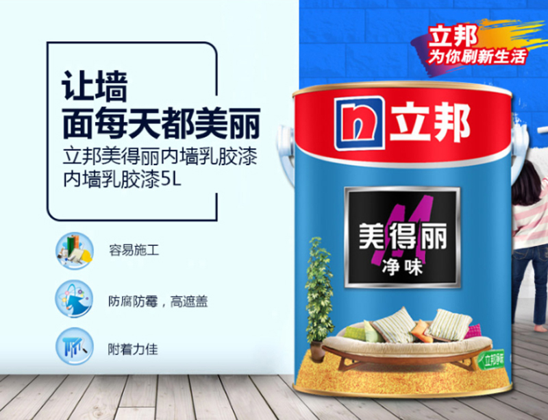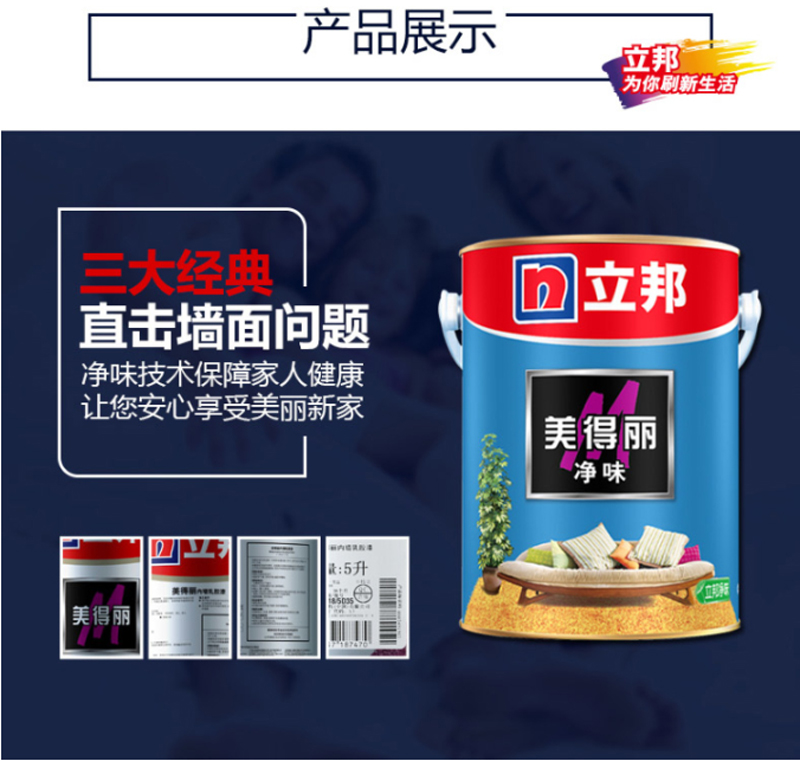商品名称:☆立邦 净味美得丽墙面漆白色净味内墙乳胶漆油漆涂料5L