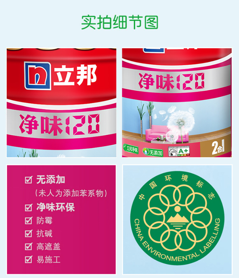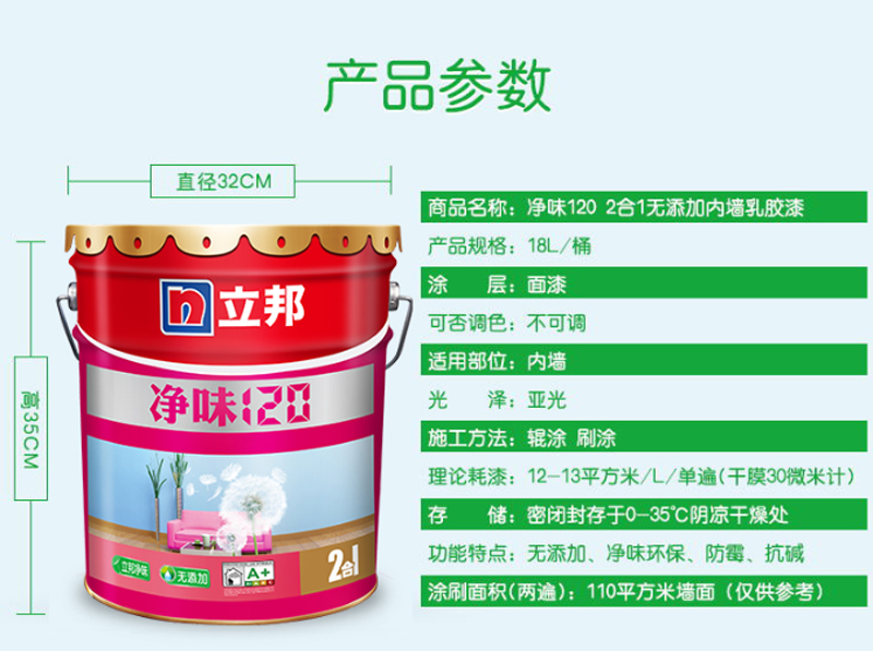 商品名称:☆立邦 漆净味120二合一无添加油漆涂料内墙乳胶漆墙面漆18L