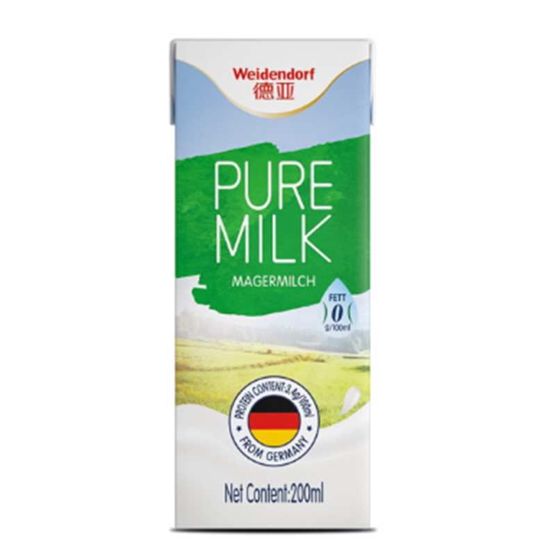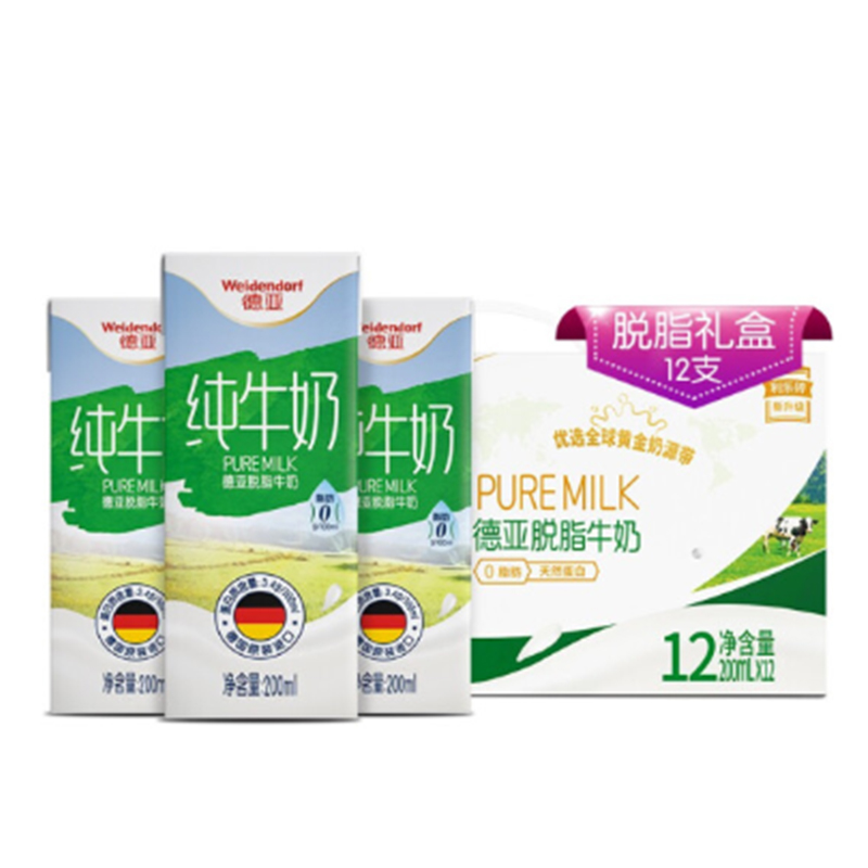 德亚(Weidendorf)脱脂纯牛奶 早餐奶 200ml*12(单位:盒)