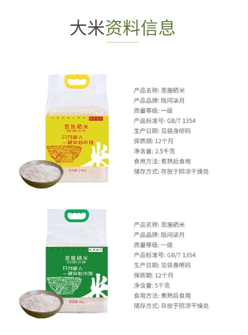 商品名称:陇间柒月-恩施硒米-5kg-单位:袋-起订量10袋
