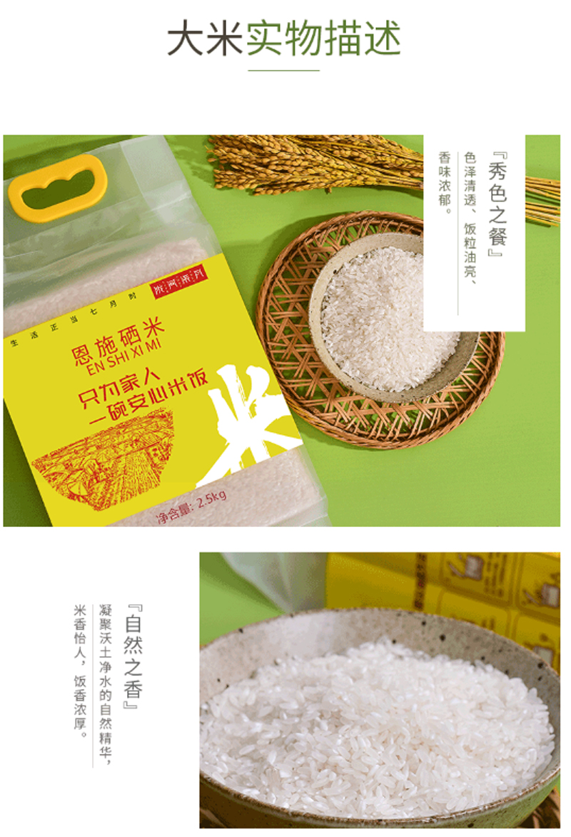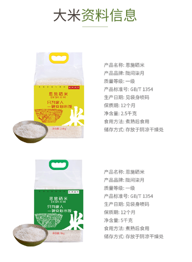 商品名称:陇间柒月-优质大米恩施硒米-2.5kg-单位:袋-起订量10袋