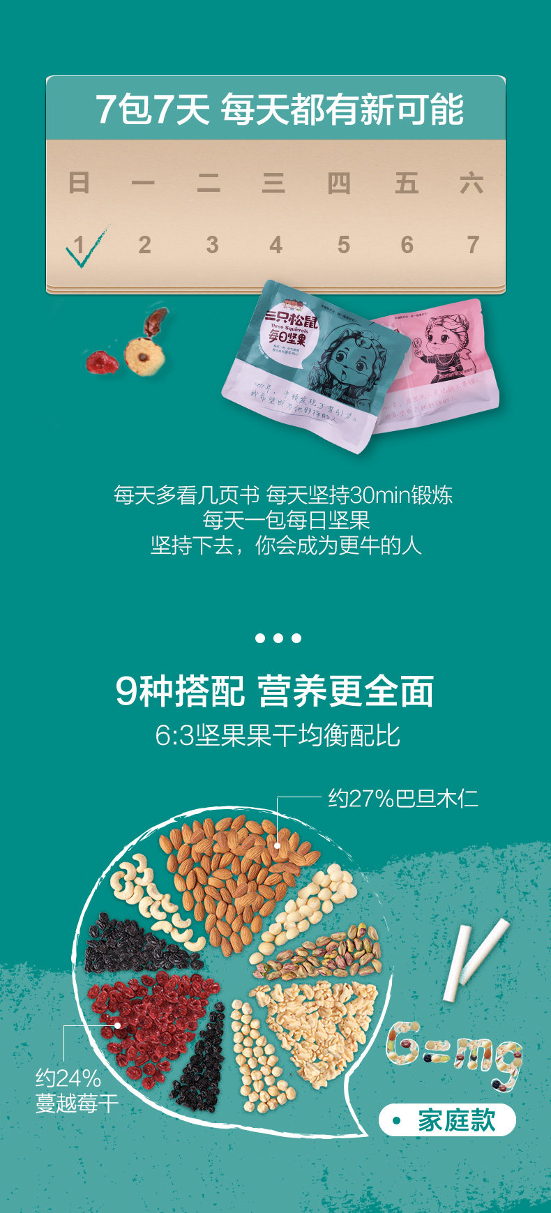 商品名称:三只松鼠 每日坚果175g/7天装 混合坚果小包装零食(单位:袋) 起订量100袋