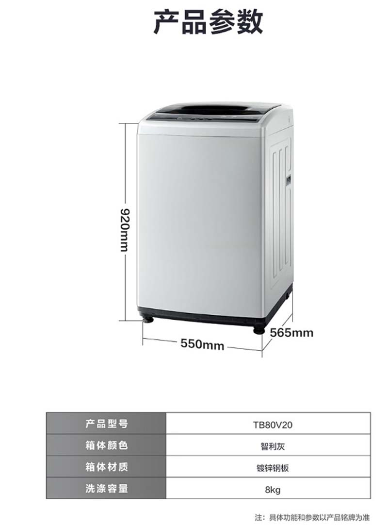 商品名称:小天鹅 8公斤家用宿舍全自动波轮洗衣机 小型大容量免清洗 一键甩干洗脱水一体 TB80-1818H(单位:台)